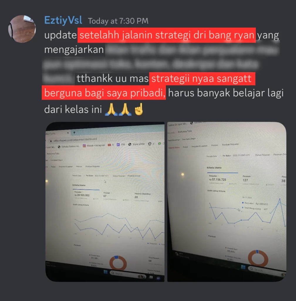 Seperti Tugiya, salah satu member kami: ‘Dari stuck 10jt… Sekarang penjualan Rp101.723.440 dengan 1,930+ orderan per bulan!